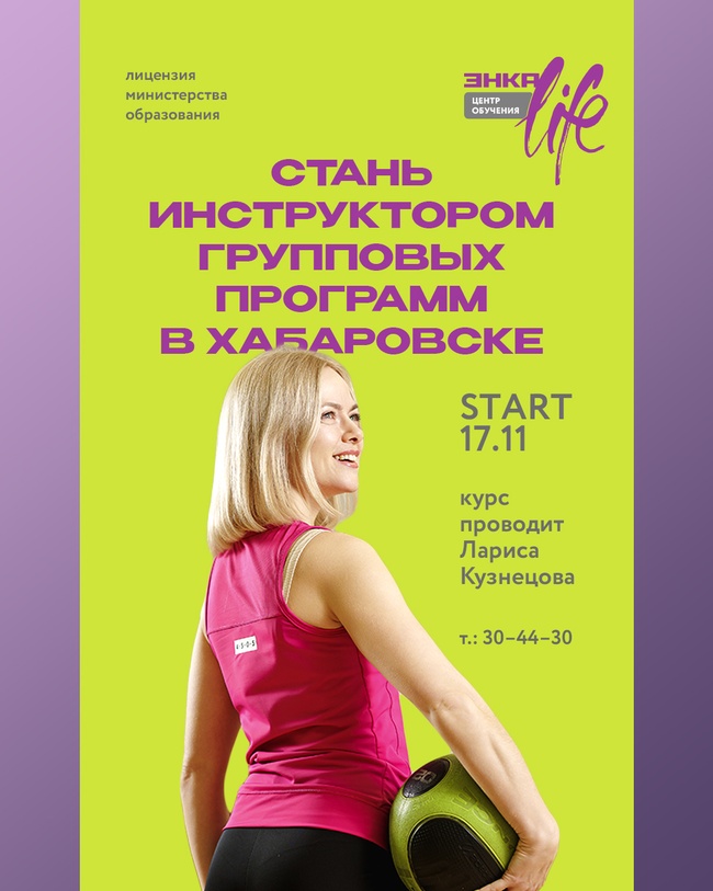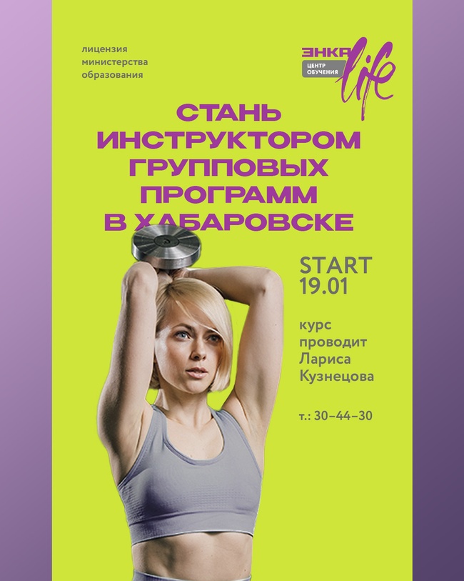 Во время обучения вы можете бесплатно посещать тренажёрный зал и групповые тренировки.